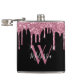 Blush Pink Glitter Drips Sparkle Monogram Black Hip Flask