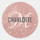 Modern blush pink glitter sticker with a dark grey name and a white monogram. Personalise with your name and initial.