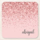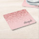 Blush Pink Glitter Sparkle Modern Monogram Party Square Paper Coaster