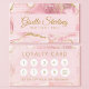 Keep clients coming back with this elegant blush pink and gold agate marble loyalty card. The soft pink marble background with faux gold glitter accents adds a touch of luxury, perfect for salons, spas, nail techs, or boutique service businesses. Customize the text, number of visits, and reward details to fit your brand. Designed to coordinate with the matching Blush Pink Gold Agate Marble Business and Appointment Cards for a cohesive, professional look.