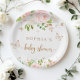 Blush pink, gold butterflies baby shower Paper Plate. Floral pink butterfly paper plate.