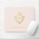 Blush Pink Gold Crest Elegant Monogram Name Mouse Pad