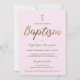 Blush Pink Gold Cross Custom Baby Girl Baptism Invitation