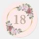 Elegant blush pink and gold floral custom number round sticker. Easily personalise online.