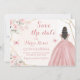 Blush Pink Gold Floral Girl Quinceañera Save The Date Card