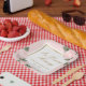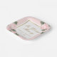 Elegant pink and gold watercolor floral memorial/funeral paper plate featuring a gold frame adorned with pink watercolor roses and baby's breath flowers. Matching items available.