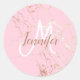 Blush Pink Gold girly Script Monogram Classic Round Sticker