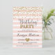 Elegant birthday invitation with blush pink and white stripes and faux gold glitter accents. Made to match our Blush Pink and Gold Collection.