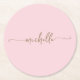 Blush Pink Gold Monogram Name Script Signature Round Paper Coaster