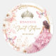 Blush Pink Gold Princess Tiara Floral Sweet 16 Classic Round Sticker