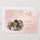 Elegant blush pink and gold wedding photo save the date card featuring a modern script font in with a gold foil effect. Easily personalise this card with your images and wedding details.