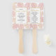 Pink and gold tropical leaves wedding program hand fan. It features leaves of Split Leaf Philodendron (Monstera deliciosa) or Swiss Cheese Plant and palm leaves in blush pink with gold outline . Your wording is in a white frame with gold outline.