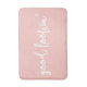 Modern and stylish blush pink bath mat featuring hand-lettered typography. This design is available in a variety of colours.