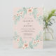 This design features a soft blush pink background adorned with delicate peach roses and lush greenery. The botanical elements include sage green eucalyptus leaves and fern-like foliage, creating a romantic and airy atmosphere. Perfect for a seasonal spring theme, the artwork evokes a sense of natural elegance and tranquillity.