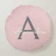 Blush Pink Grey Modern Script Girly Monogram Name Round Cushion