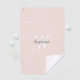 Personalised golf towel featuring a white monogram and dark grey script name on a blush pink background.