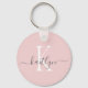 This modern blush pink keychain with your first name in a trendy script font in black and your first initial in a modern cap font in white is perfect for your keys.