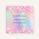 A trendy holographic background with unicorn colours and rainbow colours in pink, purple, mint green. Decorated with blush pink confetti. Personalise and add your name, title, text