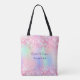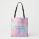 A trendy holographic background with unicorn colours and rainbow colours in pink, purple, mint green. Decorated with pink confetti. Personalise and add your name, title.