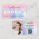 Back: Personalise and add your photo, name, title, phone number, mail, website address, qr code to your website. Purple letters. Without glitter on the back.
