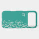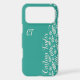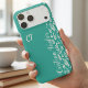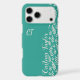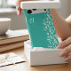 and I am absolutely thrilled about this Blush pink Leaf pattern print over Teal iPhone Case, that allowes you tocustom it with your own name and monogram initials using a retro script typography !
