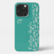 Blush pink Leaf pattern on teal monogrammed iPhone Case