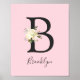 Lovely wall art decor for baby girl nursery in blush pink and large letter 'B'. Watercolor floral pastel beige, ivory, pink colours. Personalise it by adding baby's name. Background colour can be changed. Perfect gift for newborn, baby shower, birthday....
