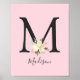 Lovely wall art decor for baby girl nursery in blush pink and large letter 'M'. Watercolor floral pastel beige, ivory, pink colours. Personalise it by adding baby's name. Background colour can be changed. Perfect gift for newborn, baby shower, birthday....