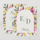 Designed with space for RSVP wording and optional QR code placement on the back, it allows guests to respond easily online while maintaining a timeless printed aesthetic. The soft neutral center panel creates beautiful contrast against the vibrant botanical border, making it ideal for garden weddings, estate venues, vineyard celebrations, and spring or summer ceremonies.