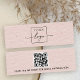Mini earring product display card with QR code and custom logo template on a blush pink PRINTED IMAGE of linen. The earring guides can be adjusted by adding and removing spaces in the template field, and by moving the whole element in the design tool.