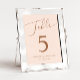 Minimal and elegant wedding table number featuring modern script text that says "Table" at the top on a blush pink background.