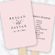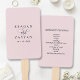 Keep your guests cool and informed with this elegant blush pink wedding program hand fan. Featuring a minimalist design with modern typography, this hand fan provides a sophisticated and practical touch to your wedding ceremony. The soft colour and clean layout showcase your wedding program details in a stylish and easy-to-read format. Perfect for any wedding theme, these hand fans ensure your guests stay comfortable while following along with your special day's events.