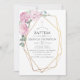 Chic pastel style floral baptism, christening or dedication invitation with gold geometric frame.