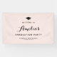 Welcome guests to your event with this customisable graduation welcome banner. It features black modern calligraphy, simple typography and a graduation cap. Personalise black and white graduation sign by adding your own details. This calligraphy graduation banner is perfect for any graduation theme. Other colours are available.