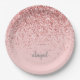 Blush Pink Modern Glitter Monogram Name Paper Plate