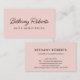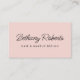 Chic Blush Pink Modern Script Hair and Makeup Business Card... Our blush pink feminine style business card features your name in modern script typography with your title in elegant sans serif text below. The sample text for your title currently says "hair and makeup design" but you can revise this and all other text on both sides of the card using the personalisation template.