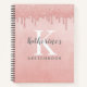 Blush Pink Monogram Dripping Glitter Sketchbook Notebook