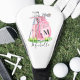 This cute monogram golf head cover features a stylish blush pink watercolor golf bag filled with clubs, surrounded by a touch of green grass. The design cleverly incorporates a simple serif font initial monogram on the bag, seamlessly blending into the bag's design. Below the monogram, the full name is elegantly displayed in script typography, adding a personal touch. The monogram is currently in a dark grey, almost black, but can be customised to your preferred colour. Perfect for the lady golfer in your life, this fun and stylish golf head cover makes a great gift for Christmas, birthdays, Mother’s Day, or any special occasion. Personalised Monogram Golf Head Cover Initial Name Blush Pink Watercolor Golf Bag Cute Girly For Her.