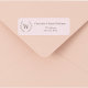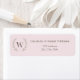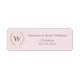 Blush pink background. Decorated with a wreath. Personalize and add your name, address and family monogram initial. Warm taupe colored text.