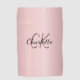 A blush pink metallic looking background. Personalise and add a name, your monogram initials. The name is written with a hand lettered style script.