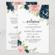 Blush Pink Navy Blue Floral Modern Wedding Program