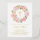 Invite family and friends to your event with this floral gold foil pressed baptism invitation. It features blush pink watercolor peonies floral wreath. Personalise this pink floral wreath baby baptism invitation by adding names, date, time and other event details. This peony baptism invitation is perfect for girl baptism. This gold foil baptism invitation is available in other foil colours.