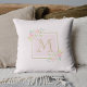 Custom-designed decorative throw pillow featuring personalised monogram on elegant pink peony design.