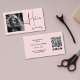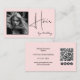 Blush Pink Photo Black Script Hair QR Code Social Business Card