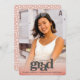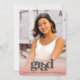 Be proud, rejoice and showcase this milestone of your favourite grad! Send out this stunning, simple, modern, personalised photo announcement for an event to remember. Bold, graphic, soft grey typography and a blush rose pink gradation overlay a photo of your choice. Personalise the custom text with your grad’s name, school and class year. Matching invites, thank you cards, cap toppers, napkins, plates and other graduation goodies are also available in this trendy and stylish collection. Guaranteed to add stylish fun to her special occasion!