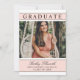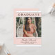 Celebrate your graduate with this modern blush pink photo graduation party invitation featuring a clean “GRADUATE” headline and an elegant framed photo layout. Personalise the graduate name, school, class year, and party details for a polished, easy-to-read design. The coordinating back includes a matching framed photo and the party details for a cohesive set. A soft, timeless colorway that’s perfect for spring and summer graduation celebrations.