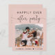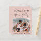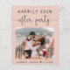 Chic blush pink budget-friendly elopement and private wedding announcement combined with a reception or celebration party invitation. The front features your photo, "Happily Ever After Party" in simple typography and a stylish script with swashes, and your names and wedding date. On the back, customise your announcement and the party or reception invitation details and add your names in a signature-like script.