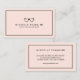 Stylish professional ophthalmologist and optometrist business cards with an elegant blush pink and black design with an eyeglasses logo. A minimalist and pretty design.