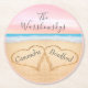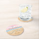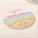 Blush Pink Purple Beach Wedding 2 Hearts in Sand Round Paper Coaster