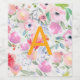 A soft romantic image with watercolored flowers, florals in blush pink, puple, green and blue. A chic white background. Personalise and add your monogram letter written with a large golden block letter.